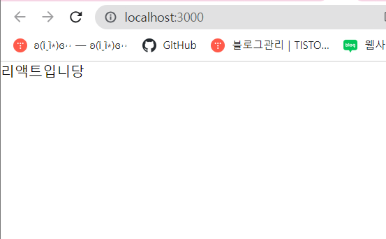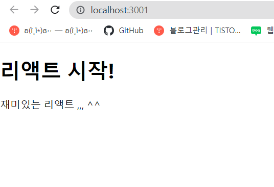 저장(Ctrl +s)을 하고 npm start를 입력하거나 이미 떠있는 리액트 페이지를 살펴보겠다.