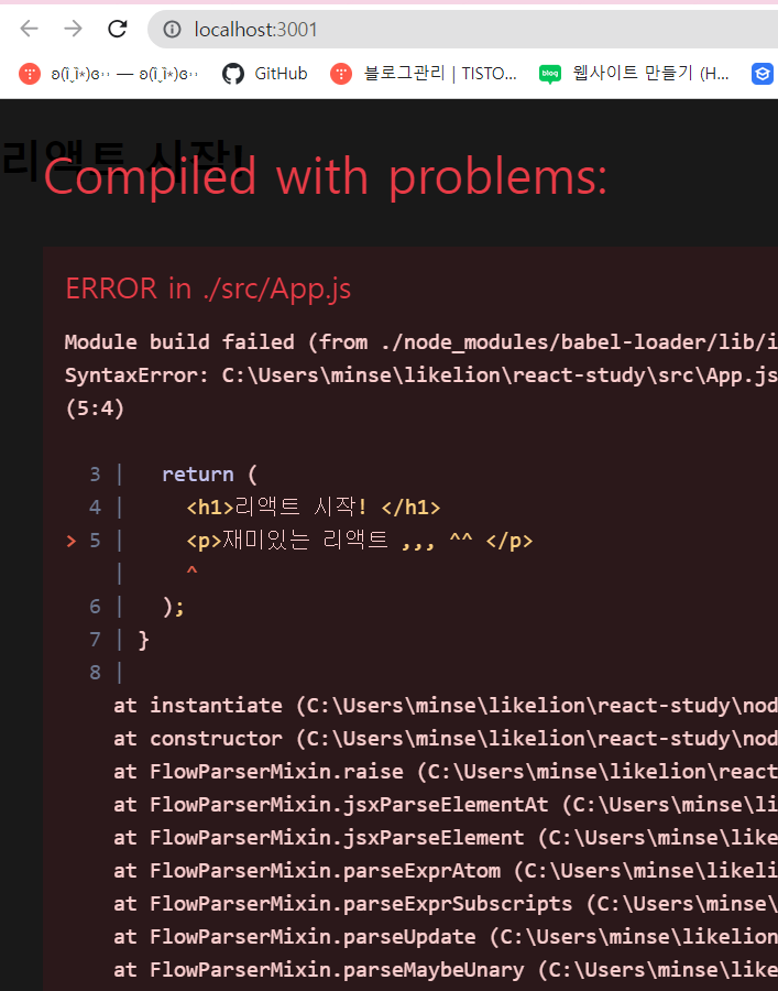 번역을 해보자면 ~ JSX 요소는 tag로 감싸주어야한다는 뜻이다.